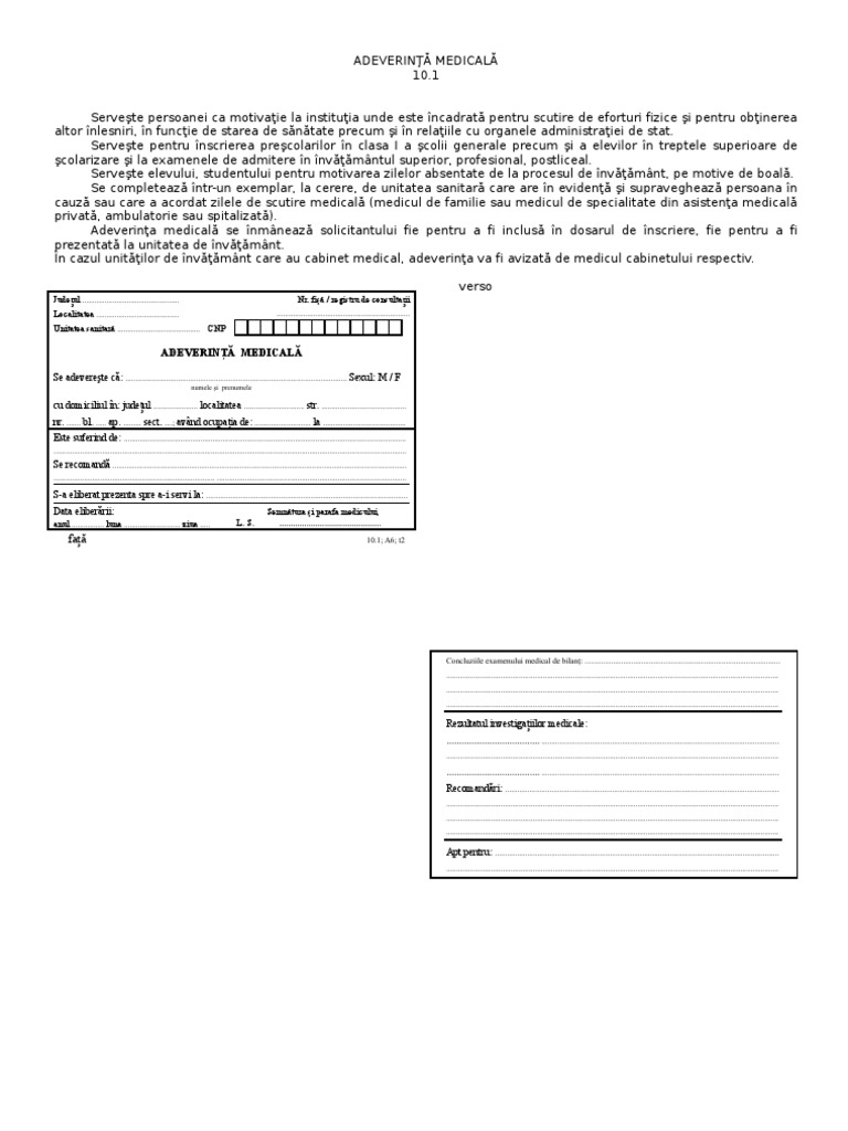vizitati articolul complet aici : https://www.emag.ro/fisa-aptitudini-medicina-muncii-a5-dib500famm/pd/DXKBWBBBM/ Cei care se angajează apelează, de cele mai multe ori, la medicul de familie atunci când li se solicită adeverinţa pe care să scrie „apt pentru muncă. Adeverinta medicala pentru inscrierea la scoala. Download adeverinta medicala pt master.