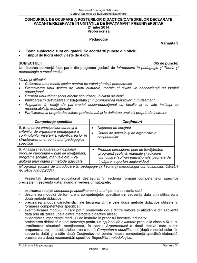 Subiecte Titularizare 2015 Educatori